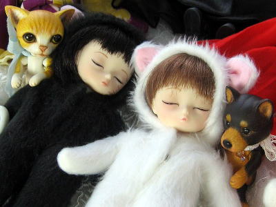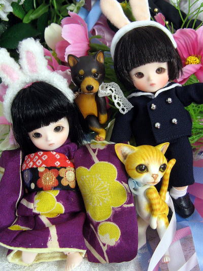 眠る子を見守っているワン君とニャンコ君は、Ashさんのお宅の子です。