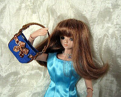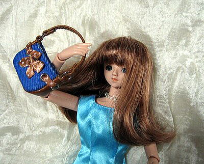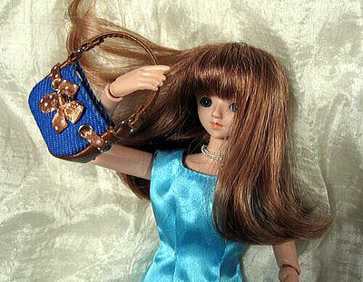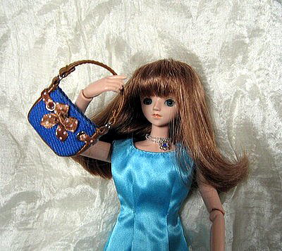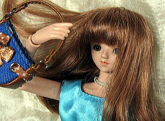 バッグを反対側に振り上げて口元を髪で隠したポーズを撮影して元の画像に混ぜてみました。